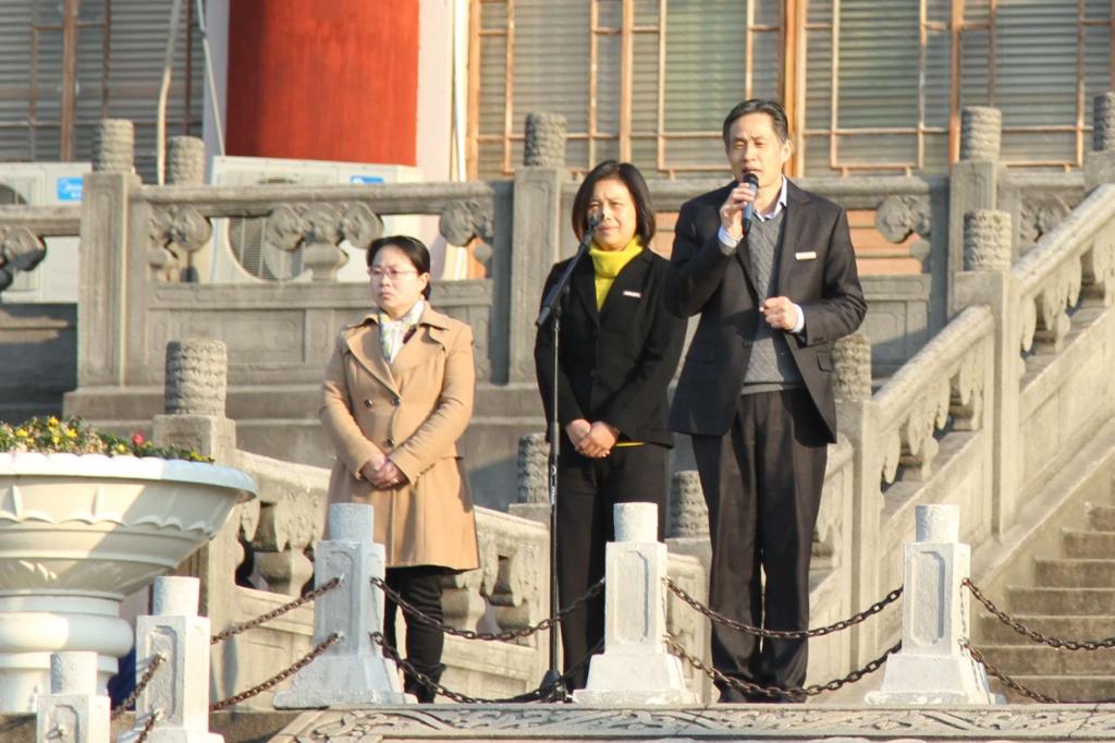 陈晓峰在仪式上向师生们寄予了新年的期望。在讲话中,他指出学校在上学期在本科教学激励计划、教育综合改革等重大改革推进过程中,受到了同学的热议、关注与支持,学校也在思政教育、团建工作、专业发展、体育科研、创新创业、志愿服务及校园文化等方面取得了优异的成绩,获得了中国青年志愿服务项目银奖、全国高校践行社会主义核心价值观“示范团支部”、上海市明星社团等荣誉。