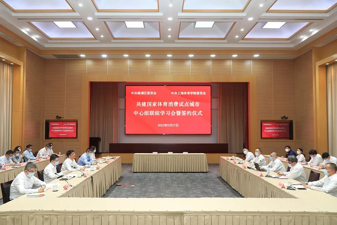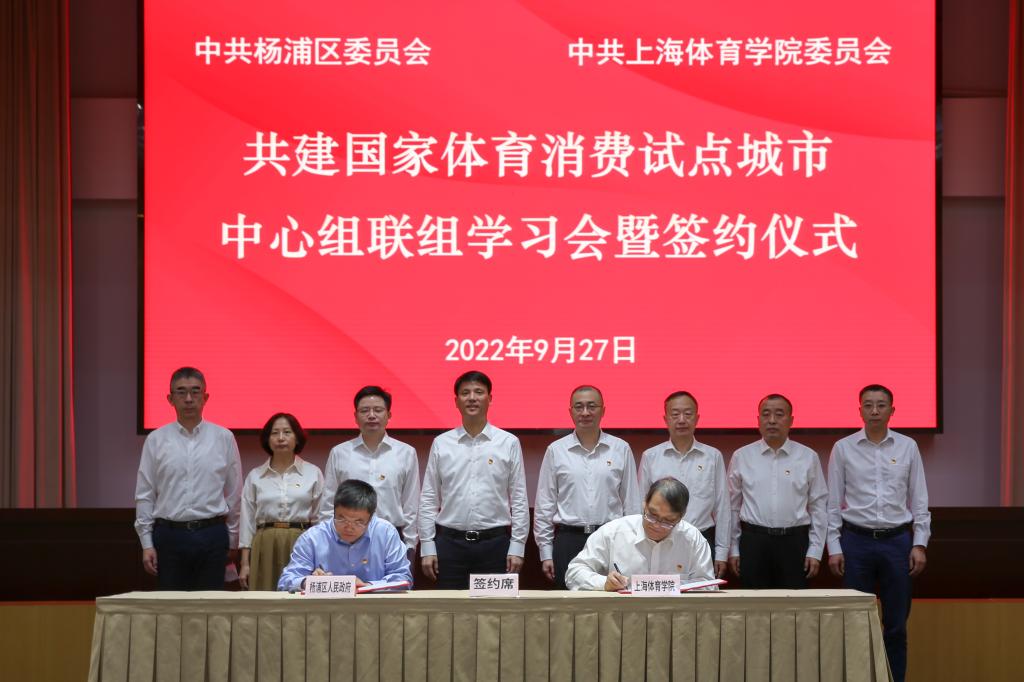 会上,薛侃、陈佩杰分别代表杨浦区人民政府和上海体育学院签署《共建国家体育消费试点城市战略合作框架协议》,与会领导见证。王浩、王继红分别作主题发言。