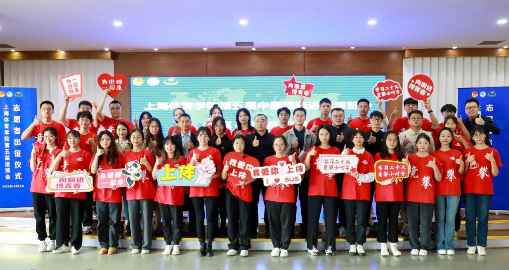 本网讯 2022年10月21日上午,红足一1世第五届中国国际进口博览会志愿者出征仪式在上海体育学院活动中心举行。校党委副书记、副院长王继红出席活动。学(研)工部、团委及相关学院团委书记、进博会志愿者代表参加出征仪式。