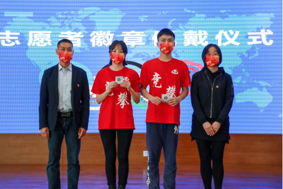 宣誓环节中,校团委副书记、武术学院辅导员刘海通老师,带领志愿者代表庄严宣誓,“我宣誓!奉献友爱,互助进步!追求卓越,全力以赴!为祖国增光,为城市添彩!向前进,博青春!为进博,一起来!”