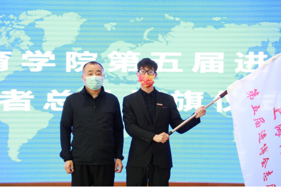 仪式上,党委副书记、副院长王继红为第五届进博小叶子们授旗,志愿服务带队老师张李兵代表第五届进博会全体志愿者接旗。总旗挥舞,预示着青春战歌的擂响;总旗飘扬,象征着我们新一届进博队伍的昂首出发。