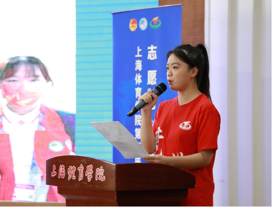 心理学院团委书记、辅导员,本届进博会带队教师志愿者张李兵在发言中首先介绍了自己以前以花绳专业运动员的身份投身志愿服务工作的故事和经历,以志愿精神对当代大学生的感召和提升价值入手,鼓励我们第五届进博志愿者们勇于担当责任,“志”写青春,努力以优异的成绩和出色的表现书写绿瓦青年进博会志愿服务的新篇章,以强烈的责任感、使命感和荣誉感,以热情周到的志愿服务,诠释“奉献、友爱、互助、进步”的志愿服务精神。
