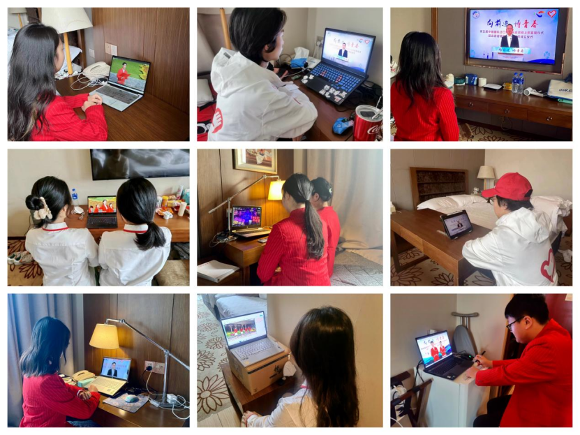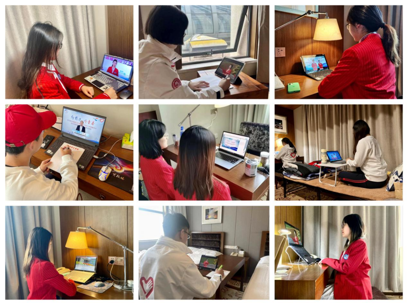 本网讯 10月28日上午,第五届进博会志愿者上岗宣誓仪式暨志愿者临时党团组织成立仪式在线上举行。第五届进博会是党的二十大后全国首次大型国际展览盛会,意义非同凡响。远在进博展馆70里外的红足一1世100名进博“小叶子”在体育交流中心驻地全程观摩参与了仪式,进一步凝结了进博精神,强化了使命意识。