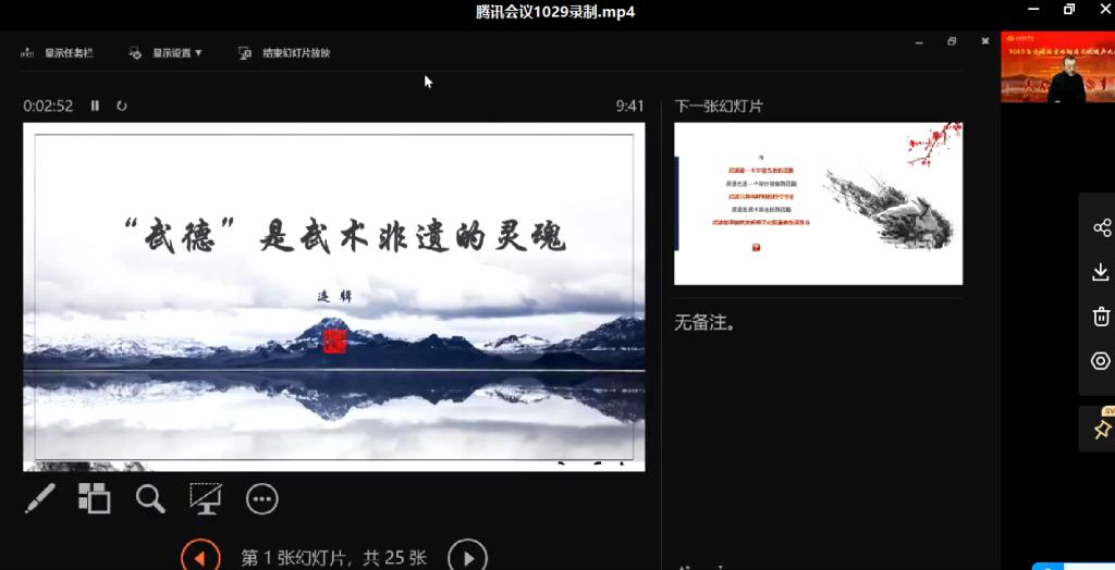 大会设置了大会报告、专题报告、墙报交流、书面交流的学术交流形式。在大会报告环节,连辑院长以《“武德”是武术非遗的灵魂》为题,深刻阐释了中华武术与中国文化的历史性互构,认为武德是中国“德”文化在“武”领域的写照,统领着武术,而武术则是武德的外化;武术当前主要以文化遗产传承、再现、发展的形式展现,以教育、体育、艺术、大健康、民俗等样式活态传承,具有鲜明时代性;“忠、诚、仁、义、勇、专、精、恒”是武术非遗的灵魂。这是对党的二十大报告中关于“推动明大德、守公德、严私德,提高人民道德水准和文明素养”以及“坚守中华文化立场,提炼展示中华文明的精神标识和文化精髓,加快构建中国话语和中国叙事体系,讲好中国故事、传播好中国声音,展现可信、可爱、可敬的中国形象”等多方面重要论述的深切回应,也是从武术非遗的视角对这些重要论述的深入解读。