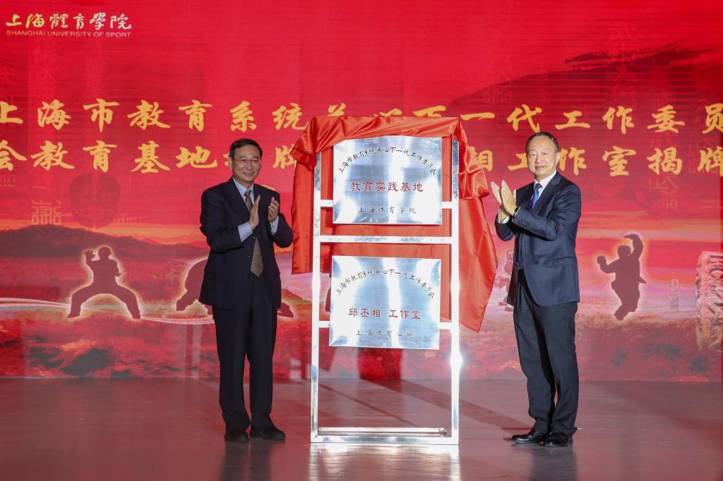 高德毅和潘勤为上海市教育系统关心下一代工作委员会教育基地及邱丕相工作室揭牌,陈其昌向邱丕相教授颁授了聘书;