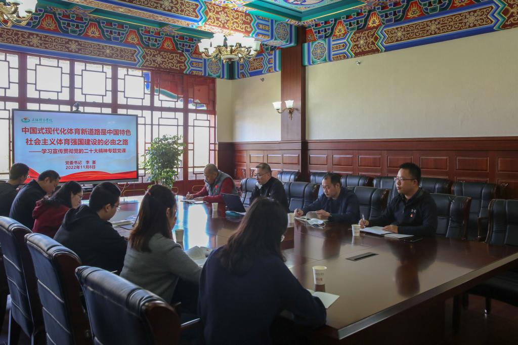 李崟结合个人对党的二十大精神学习体会,围绕中国式现代化和体育强国建设,为支部党员作了《中国式现代化体育新道路是中国特色社会主义体育强国建设的必由之路》专题党课。他强调,体育承载着国家强盛、民族振兴的梦想。近代中国百年屈辱充分证明了弱国体育无尊严,当代中国体育的巨大发展更论证了“国运兴则体育兴”的道理,建设体育强国是实现中华民族伟大复兴“中国梦”的内在要求。他指出,中国式现代化体育新道路是中国式现代化的重要组成部分,必须回应中国人民对于现代体育的需求与向往,实现物质文明与精神文明共同发展,要通过坚持党的领导、坚持人民至上、坚持全面发展、坚持胸怀天下来走好中国式体育现代化之路。