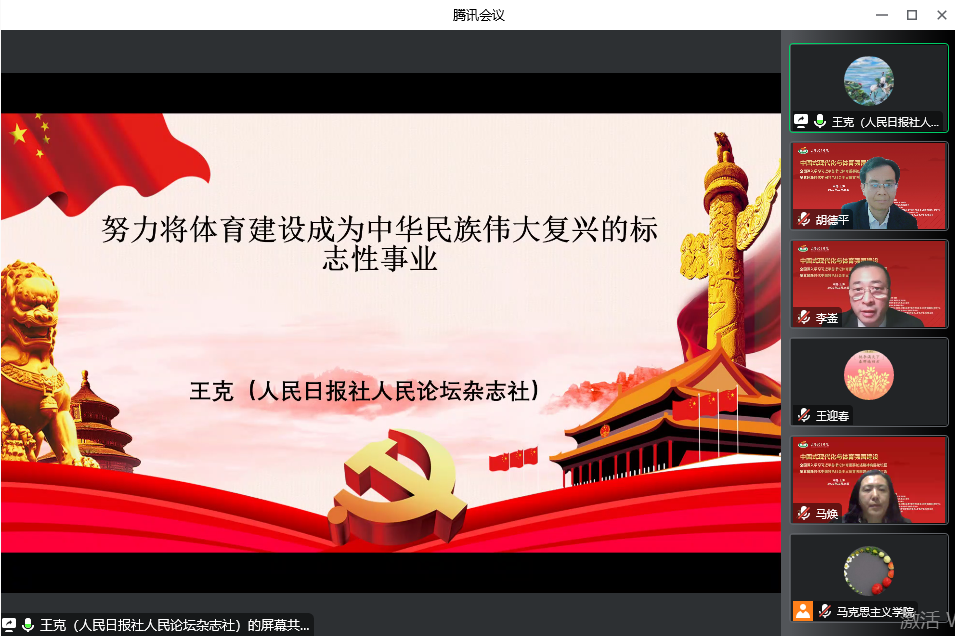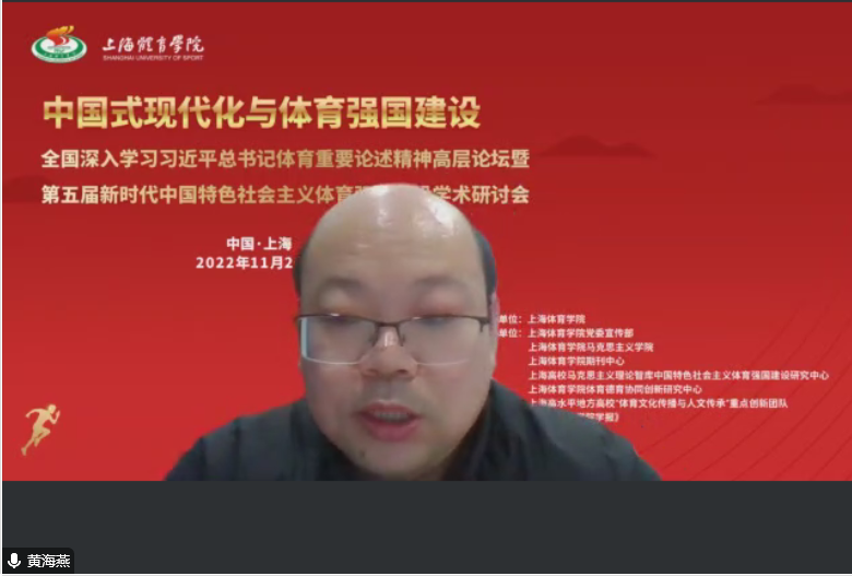 会上,上海市委宣传部原副部长、上海市社联副主席、上海体育学院马克思主义学院特聘研究员李琪教授,华东师范大学国家话语生态研究中心主任、首席专家、博士生导师胡范铸教授(二级教授),山西大学马克思主义学院院长、博士生导师任定成教授,西安交通大学国际问题研究中心执行主任、博士生导师、西安交通大学马克思主义学院赵斌教授,上海体育学院科学研究院副院长、上海运动与健康产业协同创新中心常务副主任、上海体育国家大学科技园董事长、博士生导师黄海燕教授,以及上海体育学院党委书记李崟分别作主旨报告。主旨报告由上海体育学院期刊中心主任、博士生导师吴坚教授主持。