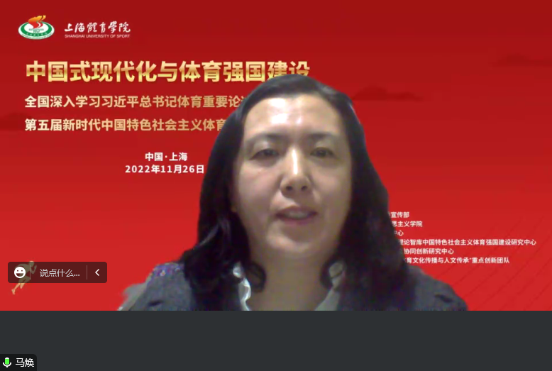 在主题研讨阶段,上海外国语大学中国国际舆情研究中心副主任、博士生导师、新闻传播学院吴瑛教授,中共中央党校(国家行政学院)党建教研部强舸教授,国家文旅部文化和旅游公共服务专家委员会委员、国家文化馆发展研究院学术委员、上海格物文化发展研究院院长符湘林,上海人工智能实验室治理研究中心副主任王迎春研究员,人民日报社人民论坛杂志社《国家治理》周刊副主编王克博士,财政部中国财政科学研究院教科文研究中心助理研究员、中国人民大学产业经济与竞争政策研究中心研究员周孝博士,上海体育学院马克思主义学院李金早副教授、张玮玮副教授分别作交流发言,上海体育学院马克思主义学院副院长马焕副教授主持主题研讨。