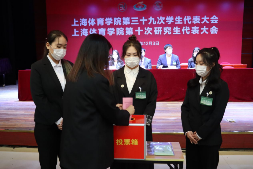 最后,上海体育学院第三十九次学生代表大会、第十次研究生代表大会在熟悉而有力的校歌声中顺利闭幕。