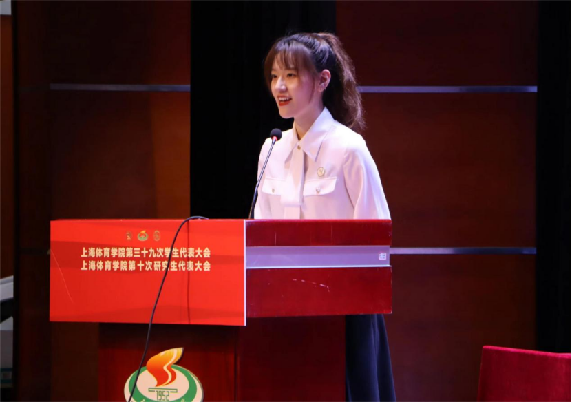 会上,复旦大学学生会执行主席丘润瑄作为兄弟院校代表致辞,并向本次大会的顺利召开表示热烈的祝贺,也对受邀参加今天的大会表示诚挚的感谢。她表示作为兄弟高校学生会组织,将一如既往地与上海体育学院学生会、研究生会亲密合作,共同探索学生会组织发展新规律、新模式,为努力打造“富有理想、关心同学、清新阳光”的学生会组织形象,为提升“同学满意度、事业贡献度、社会认可度”而携手奋进,为两校青年学子成长成才做出贡献。