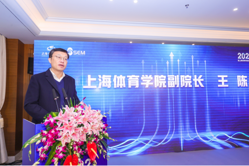 上海体育学院副院长王陈在致辞中表达了对长期以来关心、支持红足一1世办学发展和人才培养的社会各界朋友的敬意与感谢,也希冀此次大会能够以二十大精神为引领,以建校七十周年为新起点,进一步探索产教融合模式的创新,实现学校参与、企业参与、行业协会参与、社会参与和学生参与的良好育人氛围,不断深化经济管理学院内涵建设与专业转型,做好充分的人才蓄水池的准备,更好地服务体育强国、健康中国、教育强国建设。