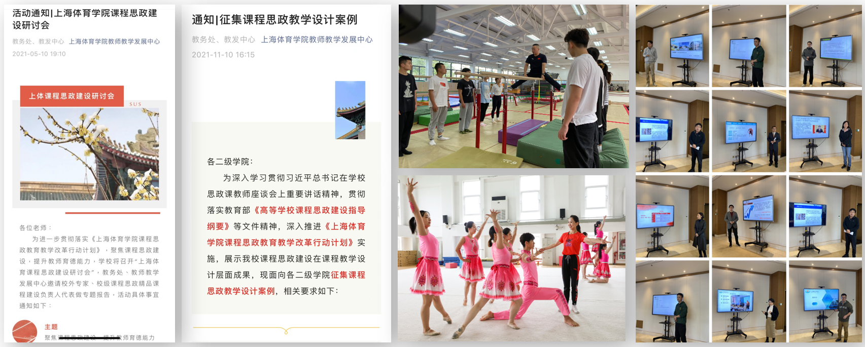 近年来,学校坚持立德树人根本任务,高度重视课程思政建设,成立学校课程思政教学研究中心,制定《上海体育学院课程思政教育教学改革行动计划》,明确课程思政推进的时间表和路线图,举办校级课程思政研讨会、公开课、工作坊,开展“课程思政精品课程”“课程思政教学研究”项目,设立课程思政教学研究课题,凝练体育类课程思政教学设计案例;依托“体育学”国家一流学科优势,开发“冠军思政”“中华武德”“体育强国”“国乒荣耀”系列蕴含体育特色的“大思政”课程,牵头撰写武术与民族传统体育、体育教育、运动科学等体育学专业课程思政教学指南。多措并举,着力推动“以体育德”特色课程思政体系建设,推进学校体育特色的课程思政建设走深走实。