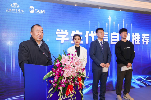 党委副书记、副院长王继红对到场参加宣讲会的企业代表表示欢迎并向参会企业推荐经济管理学院2023届应届毕业生代表市场营销专业本科生贾翠瑶、体育经济与管理专业本科生左鸿滔、体育赛事运作专业研究生章慧明等。