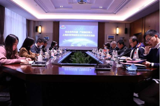 4日上午,校企合作座谈交流举办。上海体育学院党委书记李崟、教师工作部、学(研)工部、研究生处、教务处、竞技运动学院、运动健康学院、经济管理学院、科研处、科技园等主要负责人出席参加,校友企业简极科技有限公司董事长陈伟丹、品牌运营中心副总监叶妙婷,尚体健康科技(上海)有限公司董事长王海龙,上海巅峰健康科技股份有限公司总经理袁文顺参加座谈会。