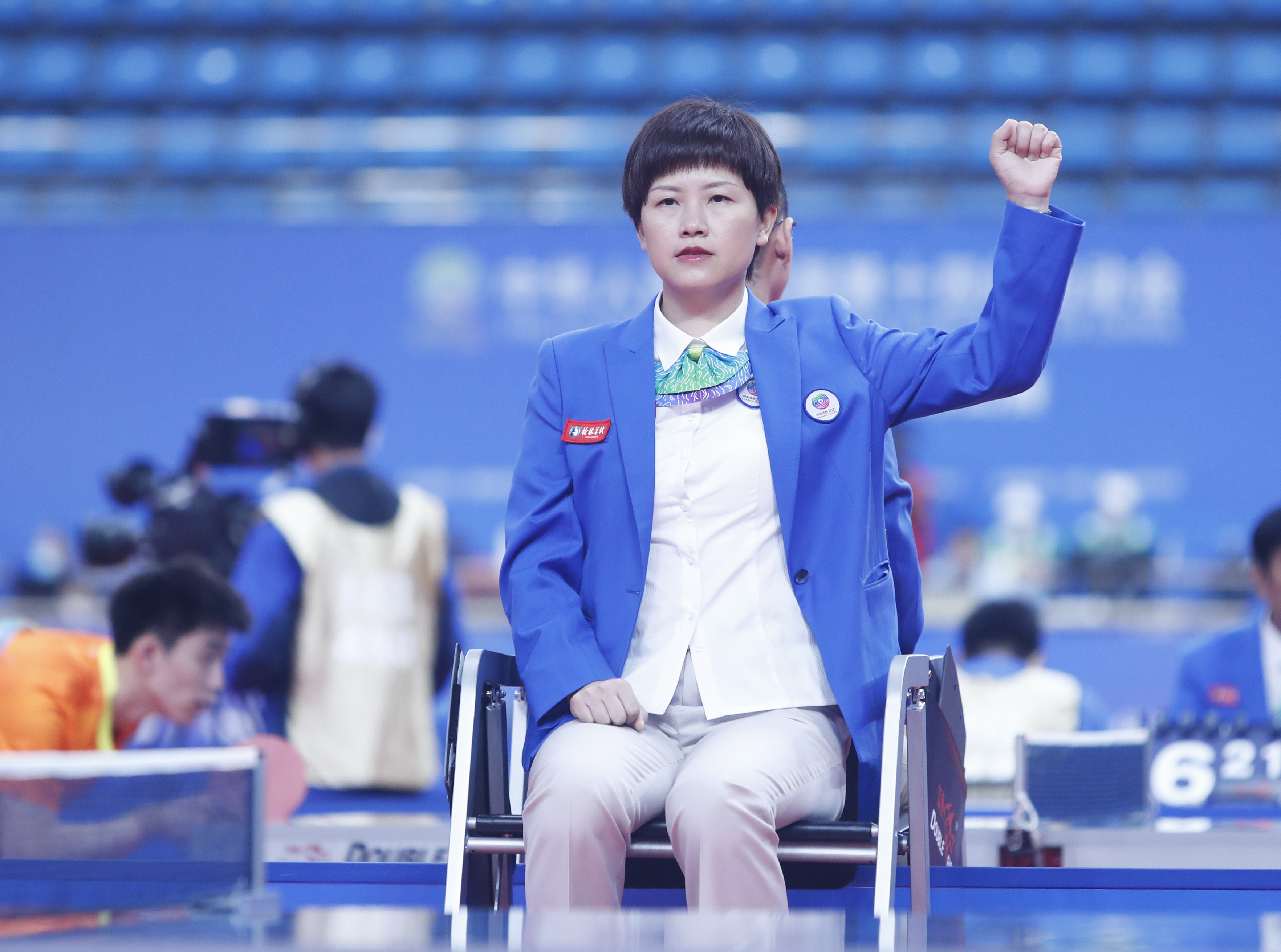 (2021年,朱玲执裁第十四届全运会乒乓球比赛决赛) |