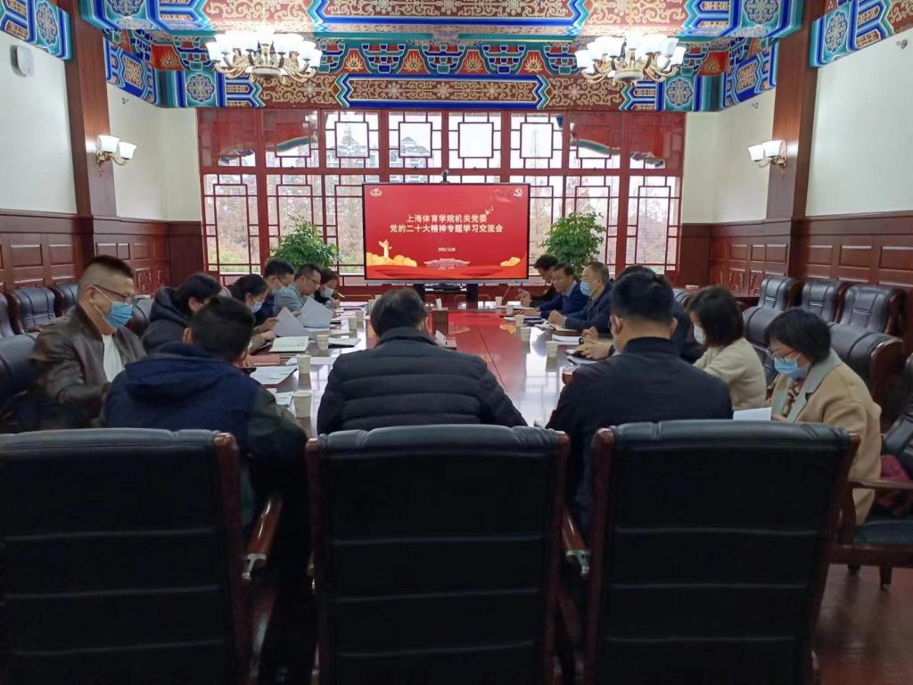 党的二十大闭幕后,机关党委第一时间制定《上海体育学院机关党委关于学习宣传贯彻党的二十大精神实施方案》。此次专题交流会是一次集中交流学习,机关党委委员发挥“头雁效应”,围绕学习宣传贯彻党的二十大精神,畅谈自身学思践悟体会。