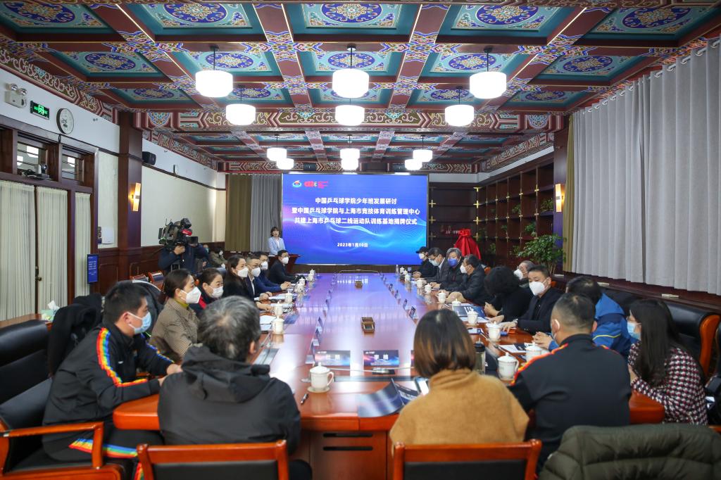 本网讯 为贯彻落实党的二十大关于体育工作部署要求,加强上海乒乓球后备人才培养,深化体教融合,探索建立符合体育事业和教育事业发展要求的创新型体育后备人才培养体系,中国乒乓球学院少年班发展研讨会暨中国乒乓球学院与上海市竞技体育训练管理中心共建上海市乒乓球二线运动队训练基地揭牌仪式于1月10日在上海体育学院绿瓦大楼第四会议室隆重举行。上海市教委、上海市竞技体育训练管理中心领导、杨浦区体育局、杨浦区教育局、上海体育学院、相关合作单位及基地学校的领导和专家学者共同参与。