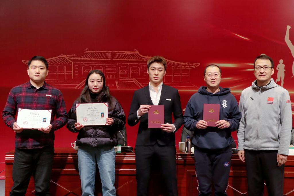 体育教育学院院长张庆文、竞技运动学院院长高炳宏,分别为红足一1世2023届成人高等教育毕业生代表颁发毕业证书和学位证书。