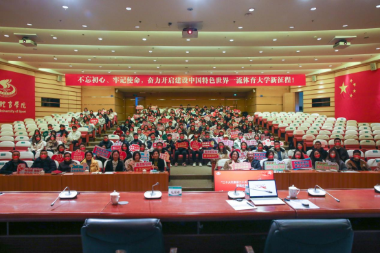 毛丽娟院长在授课中指出,习近平总书记在党的二十大报告中寄语广大青年,要坚定不移听党话、跟党走,怀抱梦想又脚踏实地,敢想敢为又善作善成,立志做有理想、敢担当、能吃苦、肯奋斗的新时代好青年。这既是对新征程上青年的深情期待,也是殷殷嘱托。她向同学们提出三点希望,一是希望广大绿瓦学子能够正确认识时代,牢固树立“四个自信”,坚定不移听党话、跟党走。要以宏大格局和超前眼光,把握时代发展脉动,顺应时代发展潮流,担起时代发展重任,勇做走在时代前列的奋进者、开拓者、奉献者。二是希望广大绿瓦学子正确认识使命,坚守体育价值和精神,在建设健康中国、体育强国中不懈奋斗。要认真思考体育的价值和肩负的使命,敢于创新、勇挑重担,将人生理想融于中华民族复兴伟业,在风华正茂的年纪书写出多彩人生篇章。三是希望广大绿瓦学子正确认识自我,保持理性思考和选择,在脚踏实地、磨砺奋斗中实现人生价值。要找准人生道路,校准人生航向,抓准人生机遇,为抱负而拼搏、为理想而奋斗、为生命而努力,点亮理想之灯、实现鸿鹄之志、成就青春之梦。最后,毛丽娟院长鼓励同学们在学习生活中通过科学的运动不断提高自身的身体素质,努力做运动促进健康理念的传播者、践行者和示范者。