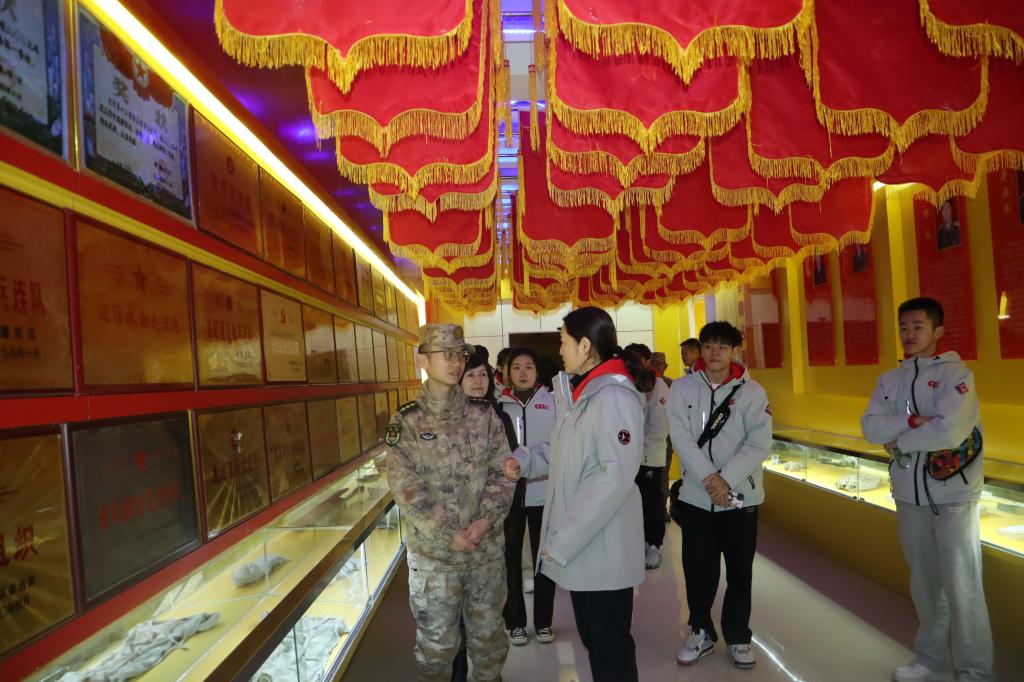 中乒院师生跟随连队指导员走进红其拉甫边防连的荣誉馆,看到无数悬于头顶的锦旗、布满墙面的荣誉牌匾时,那一刻给大家带来极大的震撼和冲击,情不自禁发出连连惊叹,这是多少红其拉甫戍边人在茫茫群山和凛凛寒风中,刻下胸怀家国、无私奉献的壮美画卷!