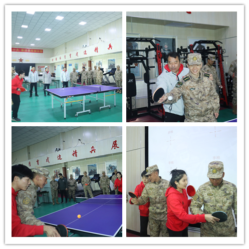 中乒院师生还与战士们进行乒乓球交流,利用讲解法、示范法以及感受法等多种方式向战士们介绍握拍、发球技术、发力方式等有关乒乓球的理论知识。战士们个个跃跃欲试,兴趣盎然,劲头十足,完全沉浸于活动中,充分感受由乒乓球带来的快乐。