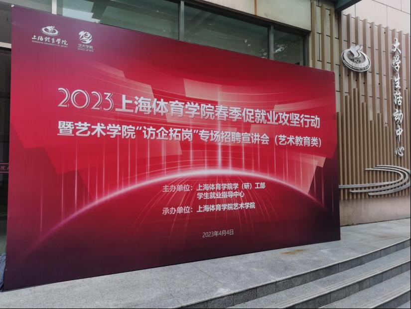 本网讯 4月4日,2023上海体育学院春季促就业攻坚行动——暨“访企拓岗”专场招聘宣讲会(艺术教育类)在活动中心三楼多功能厅举办。上海体育学院党委副书记潘勤、学(研)工部副部长(主持工作)王丽娜、艺术学院党总支书记刘勇、艺术学院副院长(主持工作)韩春英、毕业班辅导员、2023届毕业生以及各用人单位代表参加此次招聘宣讲会。