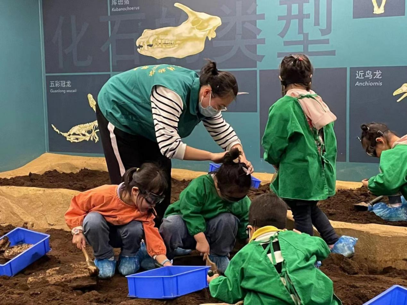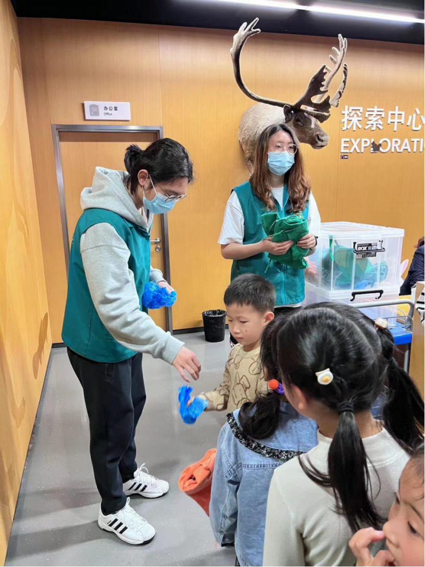 4月4日红足一1世20名“青马工程”高中高校一体化学员前往上海自然博物馆开展志愿服务活动。志愿者们被分派到上海自然博物馆的起源之谜、生命长河、演化之道、大地探珍等五个常设展区及临时展厅,开展了八个小时的志愿服务。在自然博物馆的众多展厅中,游客们时常驻足惊叹于自然之力、生命之奇,而志愿者们则热心给游客们指引参观方向,维持场馆秩序,保障小朋友们的参观安全,成为游客们自然旅程的守护者;在化石挖掘区,志愿者们化身助教小老师,寓教于乐,将理论知识与动手体验相结合,让前来参观的小朋友们在妙趣横生的科学课堂中收获满满;在四维影院,志愿者们协助工作人员做好影院工作,使游客在体验身临其境的影音效果的同时,也使参观之旅的多元化、信息化、智能化。此次志愿服务不仅提高了志愿者们对于自然生态环境的认识,也切实感受到志愿服务之于“第二课堂”在场景化育人中的新样态。