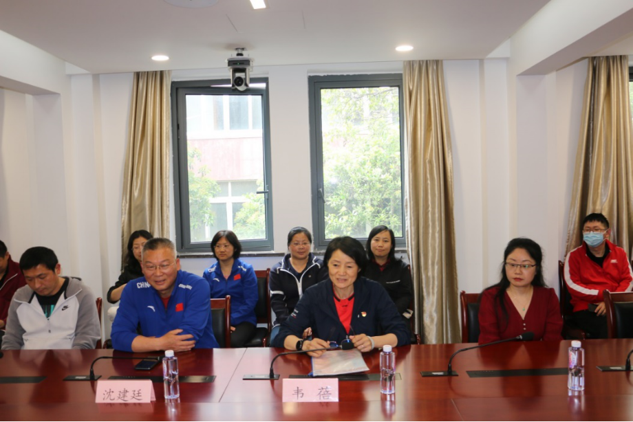校党委副书记杨玲代表学校向两位教师长期以来为学校发展作出的贡献表示感谢。她指出,两位老师爱校荣校,为学校发展和人才培养做出了重要贡献。今天大家聚在一起隆重举行韦蓓、沈建廷两位老师的退休仪式,既是向两位老师表达一份体院人的敬意,也是上体精神的传承。她希望青年教师虚心向老教师和前辈们学习,将他们的优良传统和宝贵经验传承并发扬光大。希望两位教师退休后继续关心支持学校工作,发挥余热、建言献策,继续为建设世界一流体育大学贡献智慧和力量。