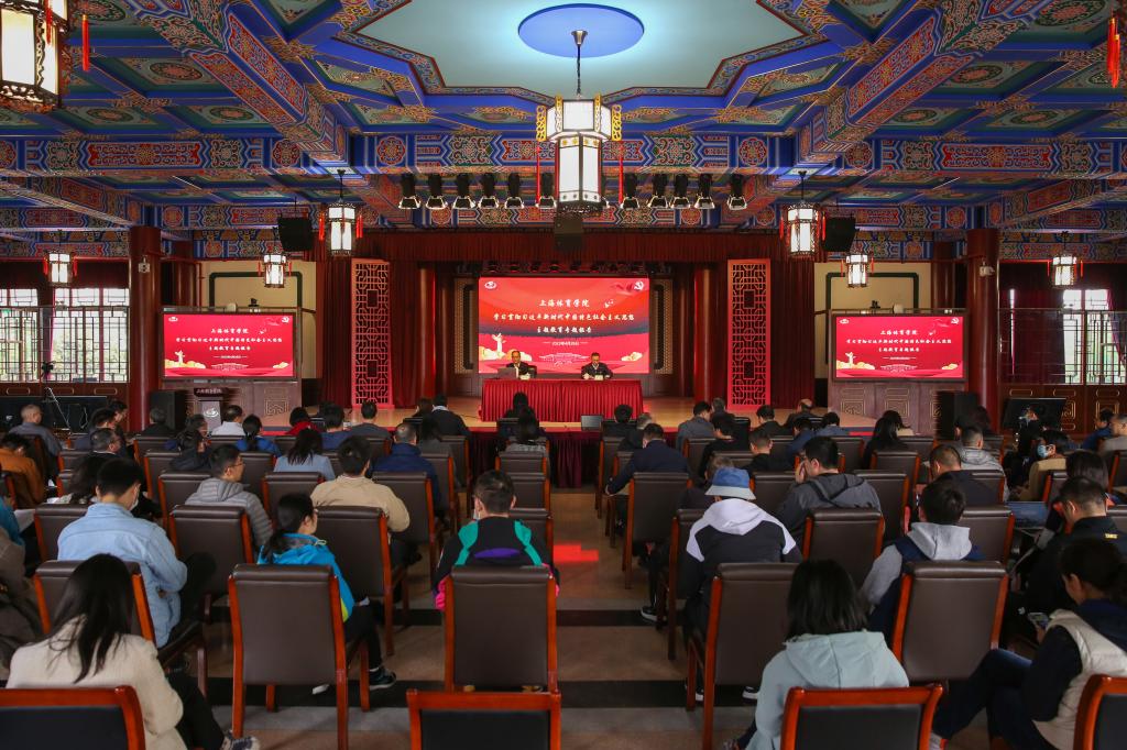 本网讯 4月26日,学校党委理论学习中心组(扩大)召开学习贯彻习近平新时代中国特色社会主义思想主题教育读书班暨专题辅导报告会。学校党委理论学习中心组成员,全体中层干部,各二级党组织组织员(宣传员、统战员)、纪检委员,基层党支部书记参加了学习。党委书记李崟主持了报告会。