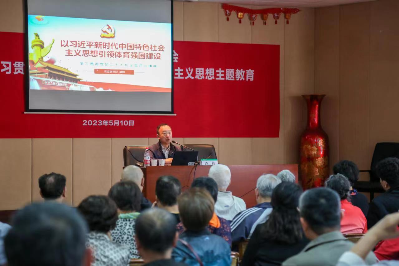 潘书记作了《以习近平新时代中国特色社会主义思想引领体育强国建设》为主题的专题党课。专题党课中,潘书记结合自己学习党的二十大精神的体会,介绍了党的二十大的基本情况,带领大家回顾了我们党过去五年的工作和新时代十年的伟大变革、“两个行”、“六个必须”,及实施科教兴国战略,强化现代化建设人才,发展全过程人民民主、保障人民当家作主,全面依法治国、推进法治中国建设,增进民生福祉、提高人民生活品质,党的二十大提出的新观点、新论断等与大家分享学习体会。