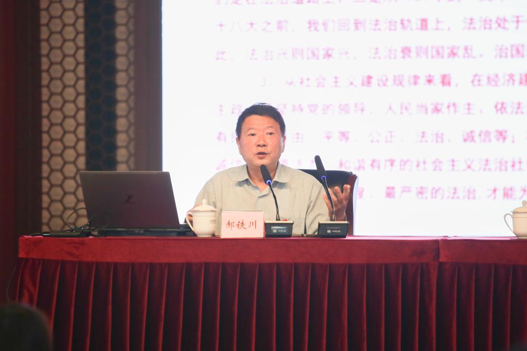 本网讯 5月17日上午,学校党委理论学习中心组(扩大)召开学习贯彻习近平新时代中国特色社会主义思想主题教育读书班,以报告会的形式专题学习习近平法治思想。报告会邀请河南大学法学院名誉院长、中央依法治国办公室国家级法治人才库专家、上海市委党的二十大精神和习近平法治思想宣讲团成员郝铁川教授授课。学校党委理论学习中心组成员,全体中层干部,各二级党组织员(宣传员、统战员)、纪检委员,基层党支部书记参加了学习。党委副书记潘勤主持了报告会。