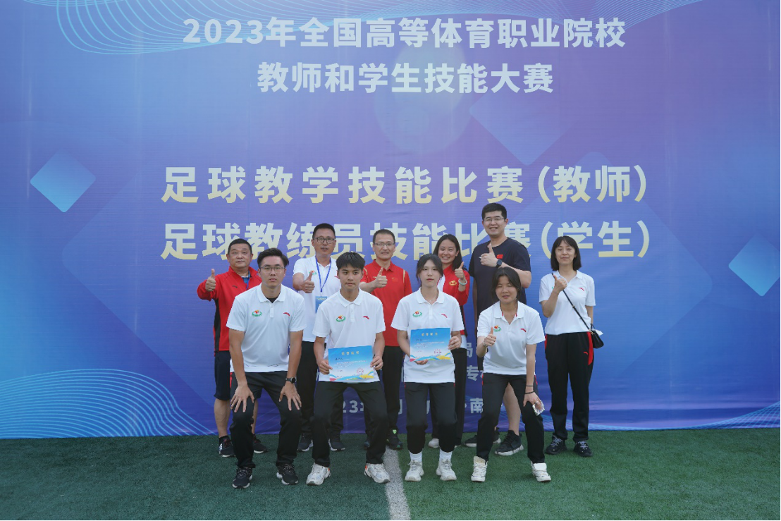 5月15日至18日,全国高等体育职业院校教师和学生技能大赛在广西南宁正式举行。在教师组的比赛中,石月、张雪和刘悦三位老师组成的“运动生理学基础”课程团队,以及李盼、门哓凡和张鹏组成的“团操训练与实践指导”课程团队参加了课堂教学能力比赛中专业技能课程组的比赛。课堂教学能力比赛由初评和现场比赛两部分构成,初评课堂教学实录视频占总成绩40%,现场讲解实施报告、模拟实际教学以及答辩占总成绩60%。该比赛共有22个课程团队参赛,“运动生理学基础”和“团操训练与实践指导”课程团队在比赛中充分展现出教师的课堂教学能力,分别获得二等奖和三等奖。周飞老师在足球教学技能比赛中,经过综合技术能力测试和教学指导能力两个环节的展示,最终获得二等奖的好成绩。