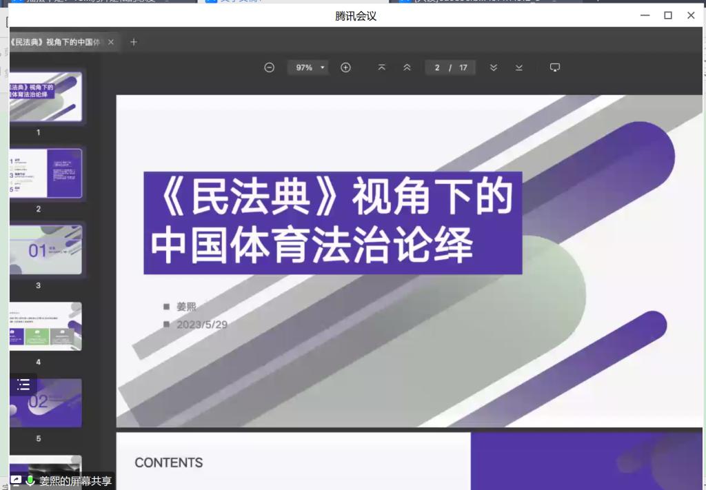 5月29日,在《民法典》颁布三周年之际,学校邀请上海政法学院体育法治研究院常务副院长、国家社科基金重大项目首席专家姜熙教授举办线上民法典专题讲座。讲座中,姜教授从民法典颁布的意义谈起,介绍了民法基本属性与体育治理私法自治传统的契合关系。重点讲解了民法总则编确立的基本原则和体育治理的关系,围绕人格权编、合同编、侵权责任编中与体育法治相关的立法精神,分析了如何保护民事主体合法权益、界定具体法律行为等方面的重要法条内容。姜教授通过多个与体育法治紧密相关的案例分析,对如何正确理解《民法典》,特别是在体育法治方面的《民法典》正确适用作了深入阐释,进一步加深了同学们对民法典与体育法治的理解。