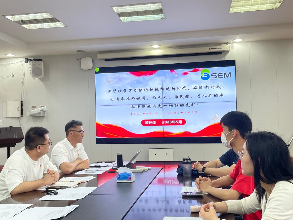 经济管理学院党委书记游林生以“树立远大理想,争做新时代新青年”为题,通过重温习近平总书记对青年的寄语,对支部党员增强关于理想信念、勇于拼搏奋斗、努力学习创新等方面提出要求。