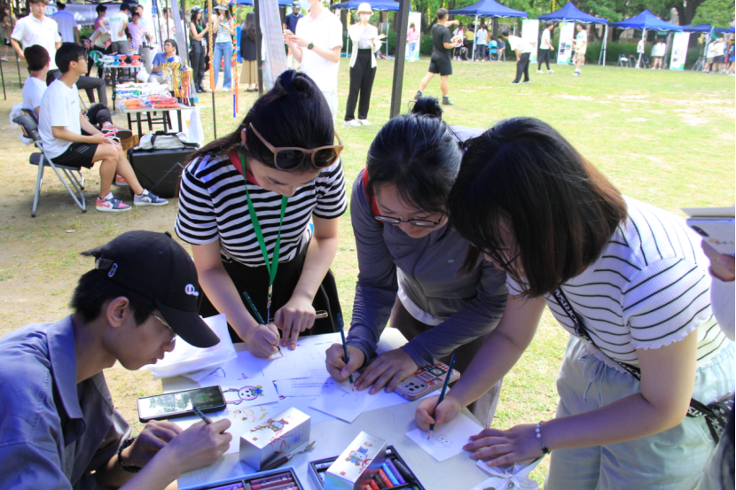 活动现场,共有23组学生社团积极参与,以各自的特点为主题带来了丰富多彩的体验活动,吸引了众多同学参与绘制卡通形象、手工绘制徽章,让同学们在绘画的同时,发觉自己独一无二的性格魅力;橄榄球、飞盘及空竹体验,使同学们在锻炼健身的同时,找寻到体育之乐趣;正确使用安全套、撕掉恶评纸条,给予同学们拒绝性羞耻、拒绝负面标签、向上生长的力量。