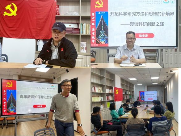 充分发挥班子学习的示范和辐射效应,创新融合师生支部主题教育工作,加强规范化、常态化、长效化学习。师生党支部依托“三会一课”、主题党日,通过交流研讨、宣讲阐释、案例教学等方式组织党员学习,落实“十个一”专项行动,推动主题教育有力有序开展、取得实效。同时,突出特色亮点,在推动主题成果转化上下功夫。打造心理学院“励心”系列党建品牌活动:青年党员教师利用“励心·成长空间”分享自身经历,推动榜样效应;党员先锋周成林、李安民、陈安涛等教授开设“励心·先锋学堂”,带头解决学科发展和专业建设中的急难愁盼问题,将主题教育与实际问题解决紧密结合,实现党建业务双促双融双提升。将教工党支部与学生党支部结对共建、联合常态化开展党支部主题党日活动。组织师生党员红色影片《望道》的观摩学习;组织行走的党课,四行仓库等红色基地实地学习;联合长海路街道党委开展志愿服务等,将党建活动贯穿到专业学习、学科建设之中,内化到立德树人、人才培养之中。