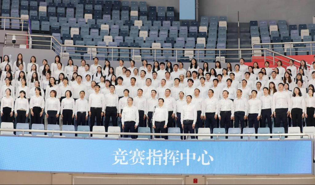 本网讯 6月15日,第十九届杭州亚运会正式进入倒计时100天,并在黄龙体育馆开展倒计时100天誓师动员大会,标志着各项筹办工作全面进入决战决胜的冲刺阶段,来自学校的35名师生在竞赛指挥中心方阵中见证本次活动。