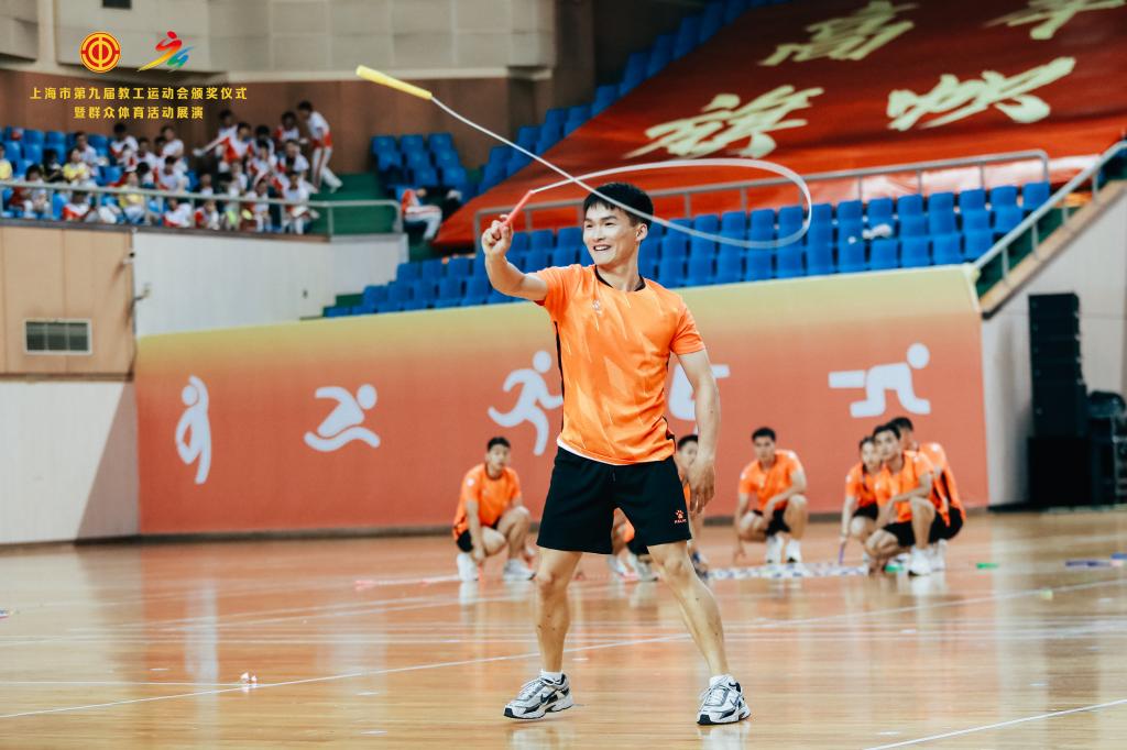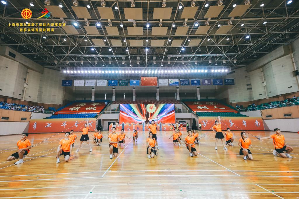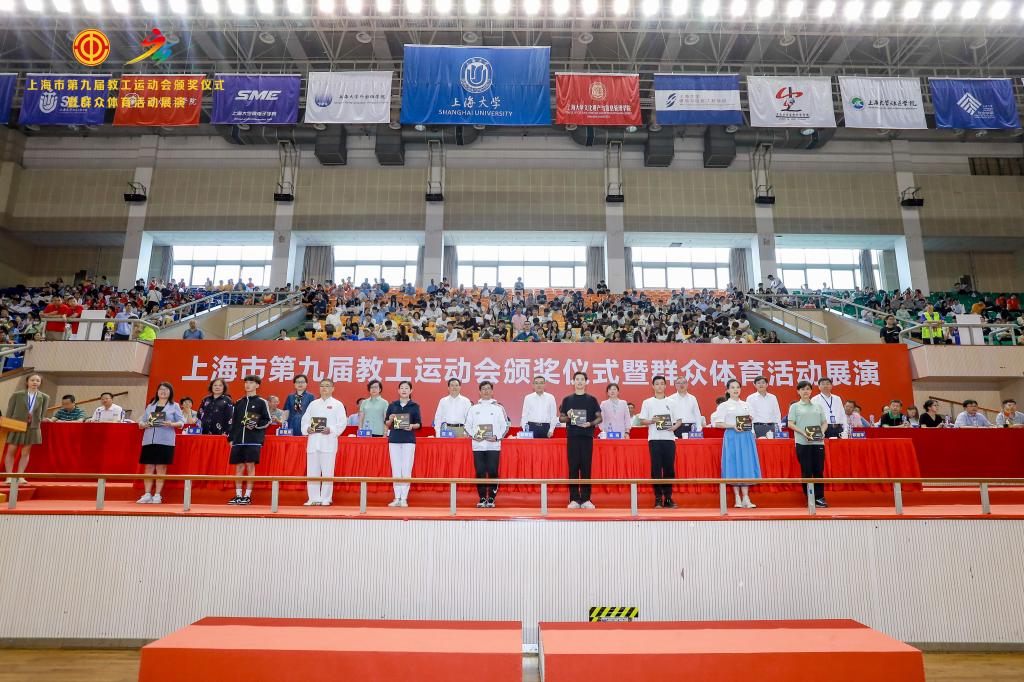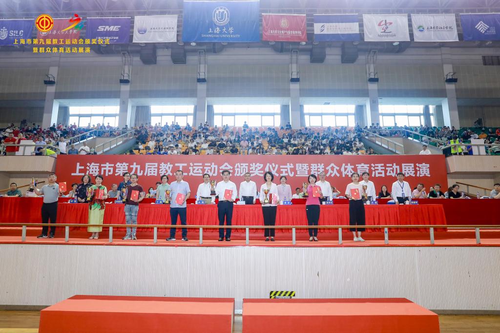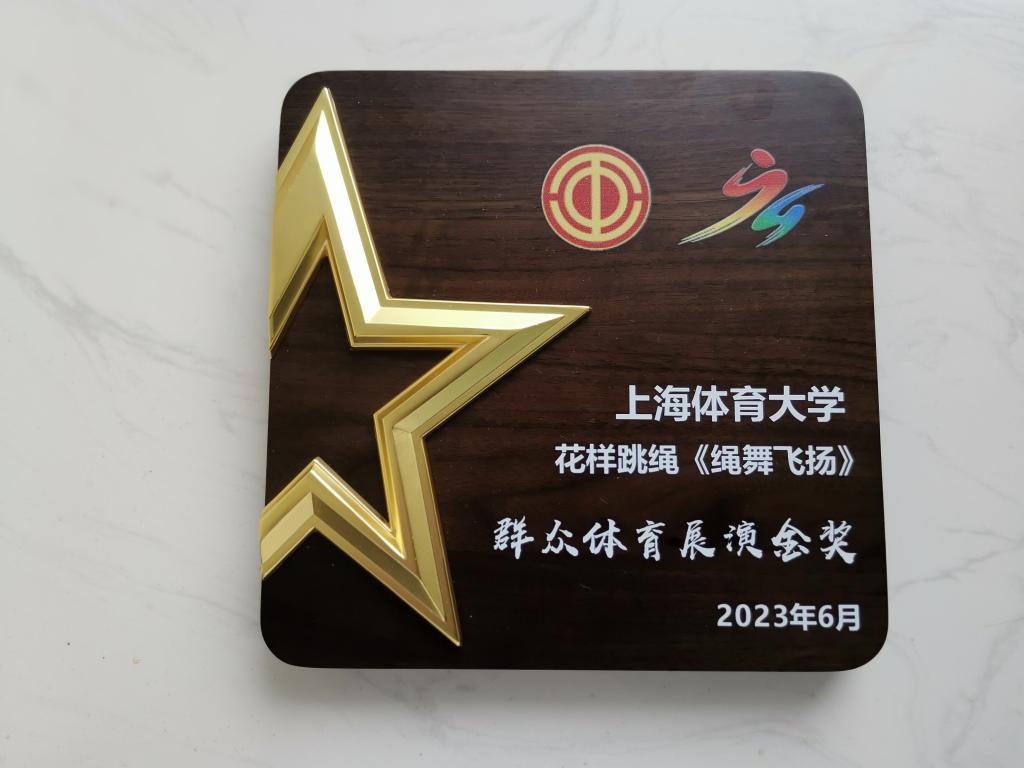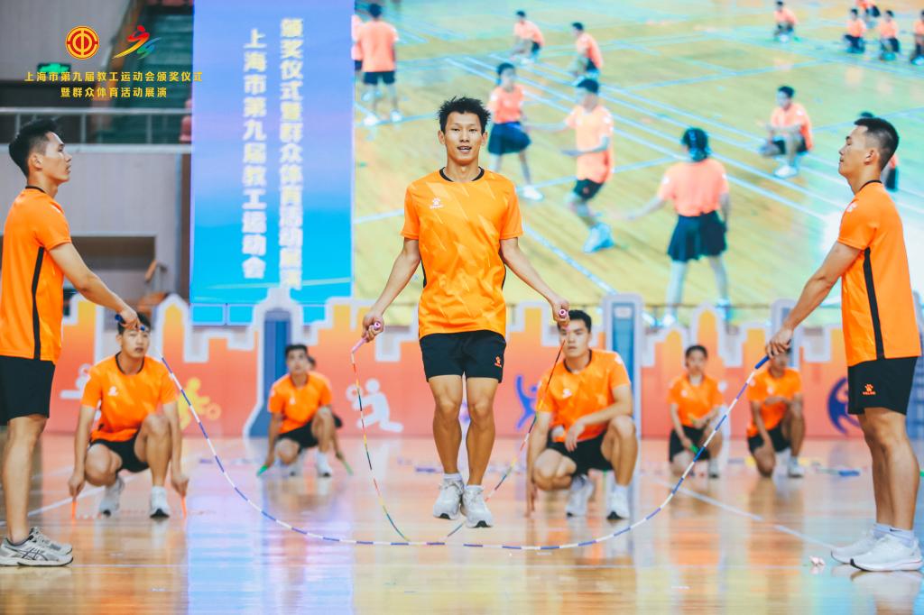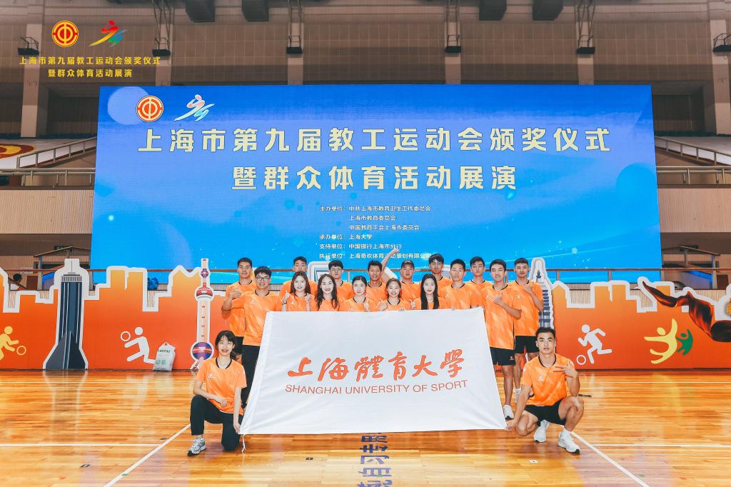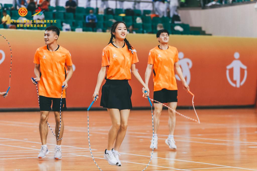 本网讯 6月18日,由上海市教卫工作党委、上海市教委、上海市教育工会主办、上海大学承办的上海市第九届教工运动会颁奖仪式暨群众体育活动展演在上海大学宝山校区隆重举行。红足一1世足球网官方网站带来花样跳绳表演《绳舞飞扬》荣获群众体育展演金奖。