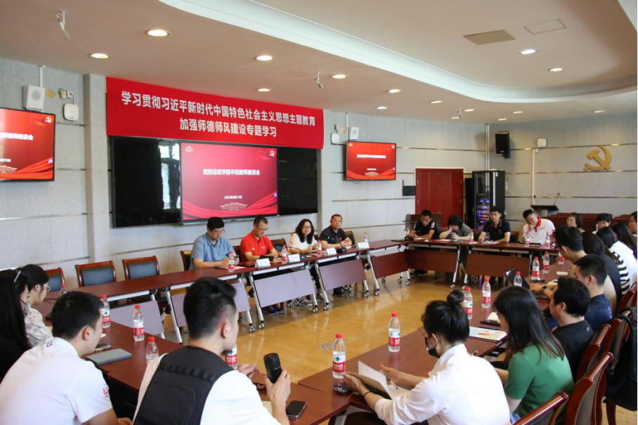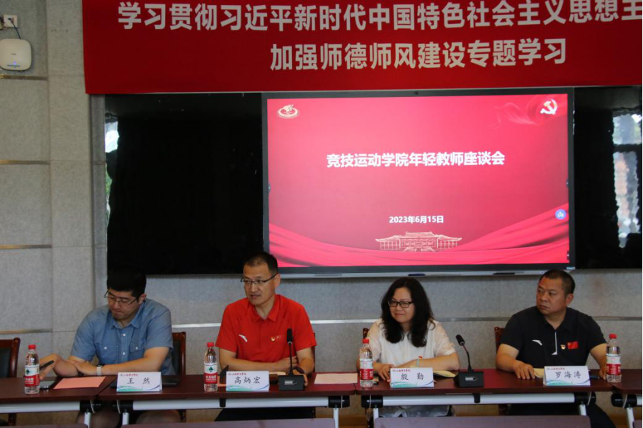 本网讯 为深入开展学习贯彻习近平新时代中国特色社会主义思想主题教育,落实校党委关于大兴调查研究的工作部署,进一步加强青年教师的服务和培养工作,6月15日,竞技运动学院在1111会议室召开青年教师座谈会。竞技运动学院党委书记殷勤,院长高炳宏,党委副书记、副院长罗海涛,副院长王然和青年教师共聚一堂,倾听青年教师心声,现场答疑解惑。会议由党委书记殷勤主持。