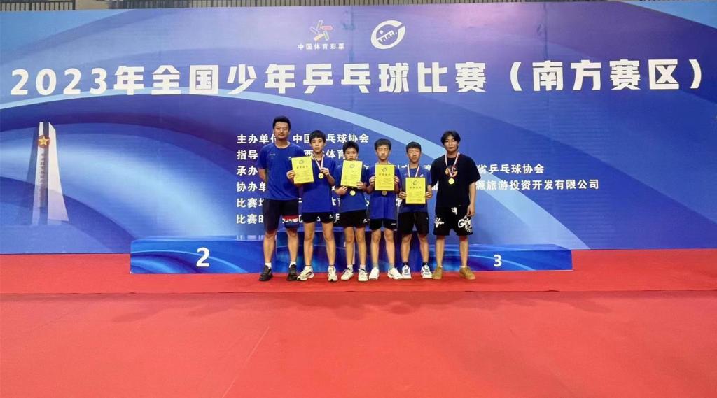 由少年班周冠宏、张逸涵、俞景阳、许博洋四名小将组成的中国乒乓球学院男子团体代表队一路过关斩将,问鼎男团冠军!这也刷新了中乒院少年班成立以来参加全国少年乒乓球比赛(南方赛区)男团比赛的最好成绩。