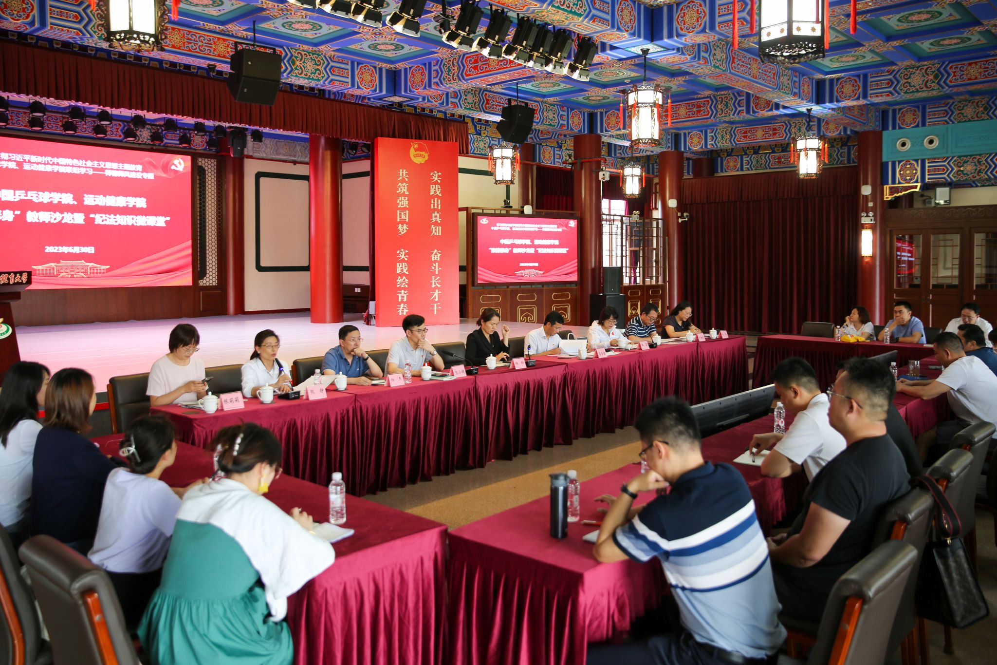本网讯 为深入开展学习贯彻习近平新时代中国特色社会主义思想主题教育,贯彻落实教育部《师德师风建设工作推进暨师德集中学习教育启动部署会》精神,进一步引导广大党员干部牢固树立纪法意识、巩固和促进师德师风建设,教育引导党员干部与教师队伍切实做到懂法纪、知敬畏、存戒惧、守底线,6月30日下午,中国乒乓球学院、运动健康学院在绿瓦大礼堂开展了以师德师风建设为专题的联组学习。学校党委副书记杨玲、纪委专职副书记熊小健、教工部部长、机关党委书记霍圣录,中国乒乓球学院、运动健康学院党政领导班子、组织员、党支部书记、全体教师和辅导员参加了会议,会议由运动健康学院党委书记熊静主持。