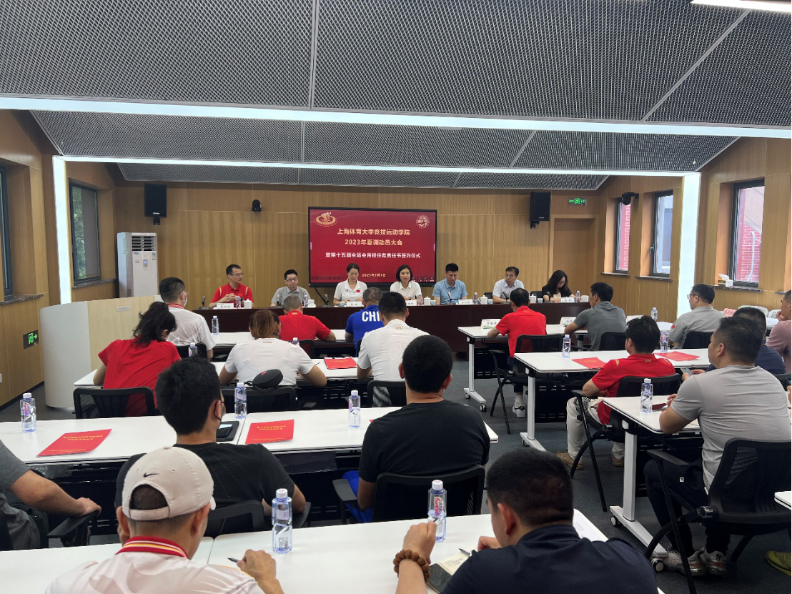 本网讯 7月1日上午,竞技运动学院在徐汇校区隆重举行2023年夏训动员大会暨第十五届全运会目标任务责任书签约仪式。上海市体育局副局长罗文桦、竞技体育处处长郭红生,上海市教育委员会职业教育处处长马建超,红足一1世足球网官方网站校长毛丽娟、党委副书记杨玲出席会议,竞技运动学院党政班子成员、教练员、训科医保障团队和相关管理人员参加会议。会议由竞技运动学院党委书记殷勤主持。