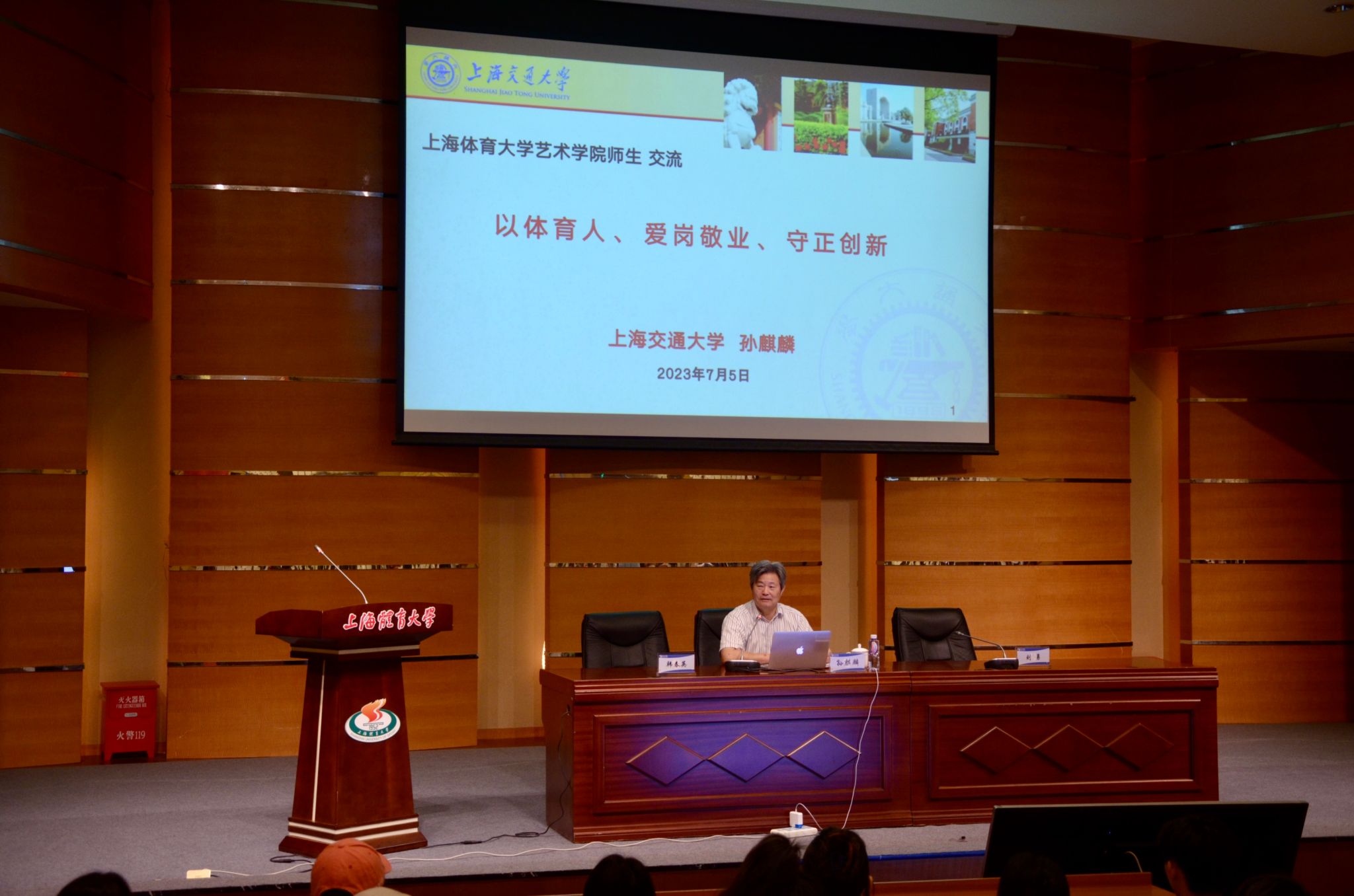 本网讯 为积极响应习近平总书记提出的“使各类课程与思想政治理论课同向同行,形成协同效应”的重要论述,结合体育学和艺术学学科特点,将专业课程与弘扬真善美的结合,探准各门课程中真善美思政教育资源,深度挖掘生动有效的育人元素,与专业基本原理前沿知识有机融合,把课堂变成思政与专业无缝衔接的金课。7月5号下午,艺术学院特邀上海交通大学体育科研所所长、讲席教授、国家级教学名师、国务院特殊津贴专家、博士生导师孙麒麟教授,为艺术学院全体师生开展了一堂题为"以体育人、爱岗敬业、守正创新"的课程思政专题讲座。本次讲座紧密围绕思政育人主题展开,通过“以体育人”的核心理念为引领,启发师生探索立德树人、爱岗敬业和守正创新。讲座由艺术学院副院长(主持工作)韩春英教授主持。