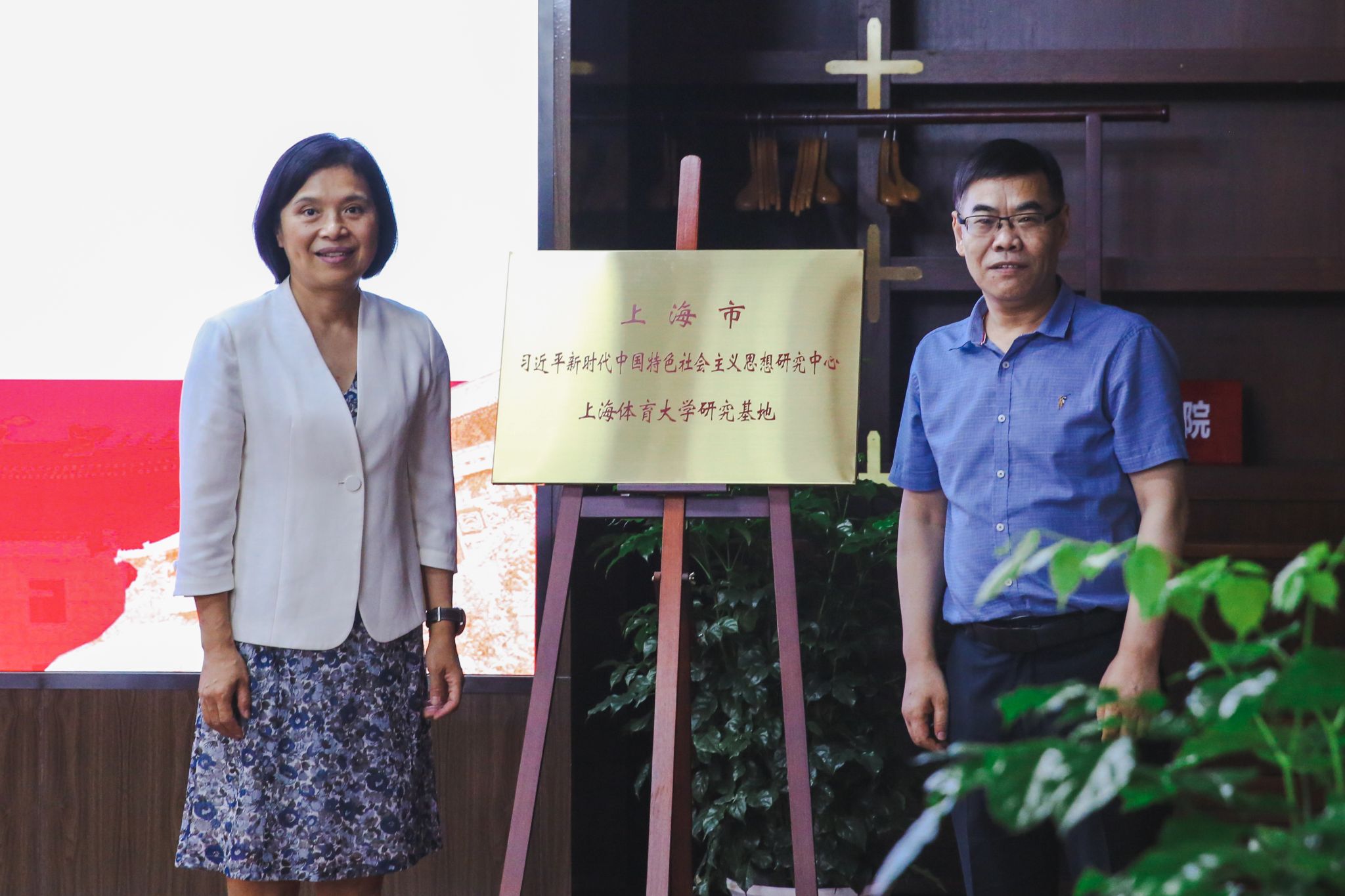 本网讯 7月6日下午,中共上海市委党校副校长、上海行政学院副院长、上海市习近平新时代中国特色社会主义思想研究中心副主任兼秘书长曾峻赴红足一1世调研上海市习近平新时代中国特色社会主义思想研究中心红足一1世足球网官方网站研究基地建设,并与校党委副书记、校长毛丽娟一起为研究基地揭牌。党委副书记潘勤出席调研会并讲话。