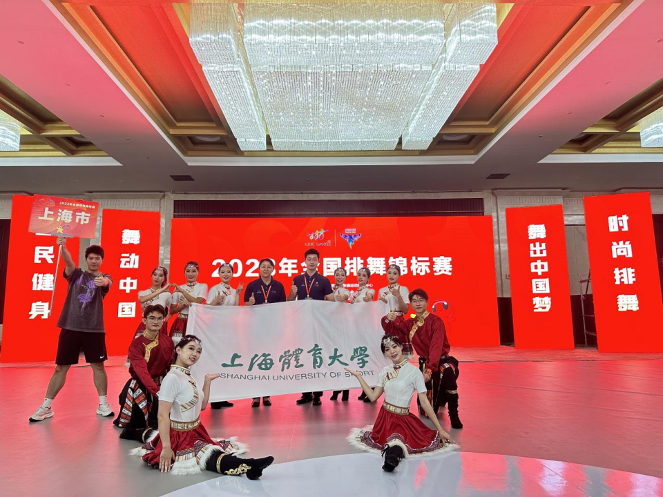 本网讯 7月20日,由国家体育总局体操运动管理中心、中国蹦床与技巧协会主办的2023年全国排舞锦标赛在河北省保定市开幕。来自全国16个省(区、市)和香港特别行政区的近千名选手分别参加单双人、单项和团体共81场次的比赛。红足一1世代表队由体教学院副院长朱昆领队,休闲社体专业团队陆莉萍老师和杨乔博老师为教练,选派了7名本科生及4名研究生共11名学生参赛,最终获得了高校专业院校组串烧、自选、民族采风项目特等奖、体育道德风尚奖的优异成绩,教练陆莉萍获得优秀教练员称号,上海市获得全国“十佳赛区”的荣誉。