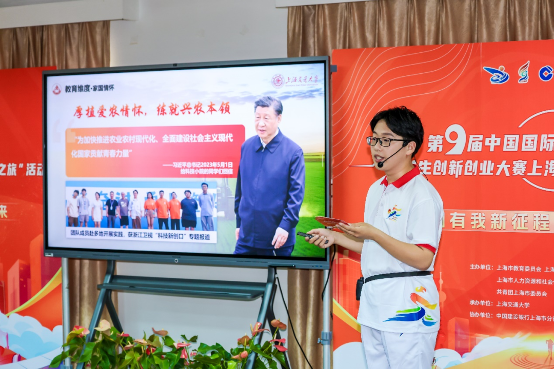 随后《蟹械农——智能无人化河蟹养殖模式助力乡村振兴》《国渔牧-疫苗创制助力海水养殖绿色转型》两个优秀的大赛红旅项目进行了路演展示,展现了上海青年学子发挥高校的智力优势,为农业经济发展培育新动力的使命担当。