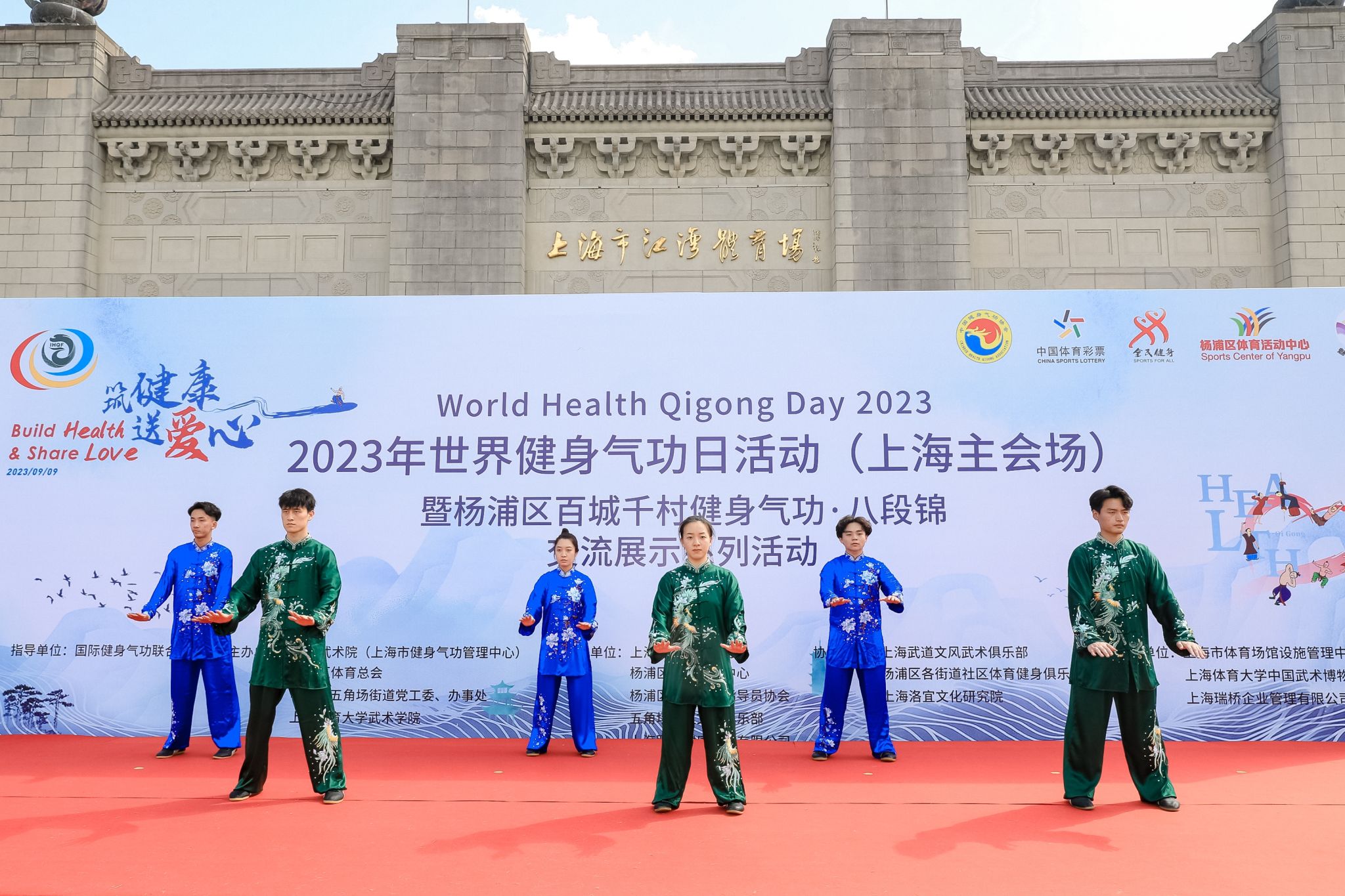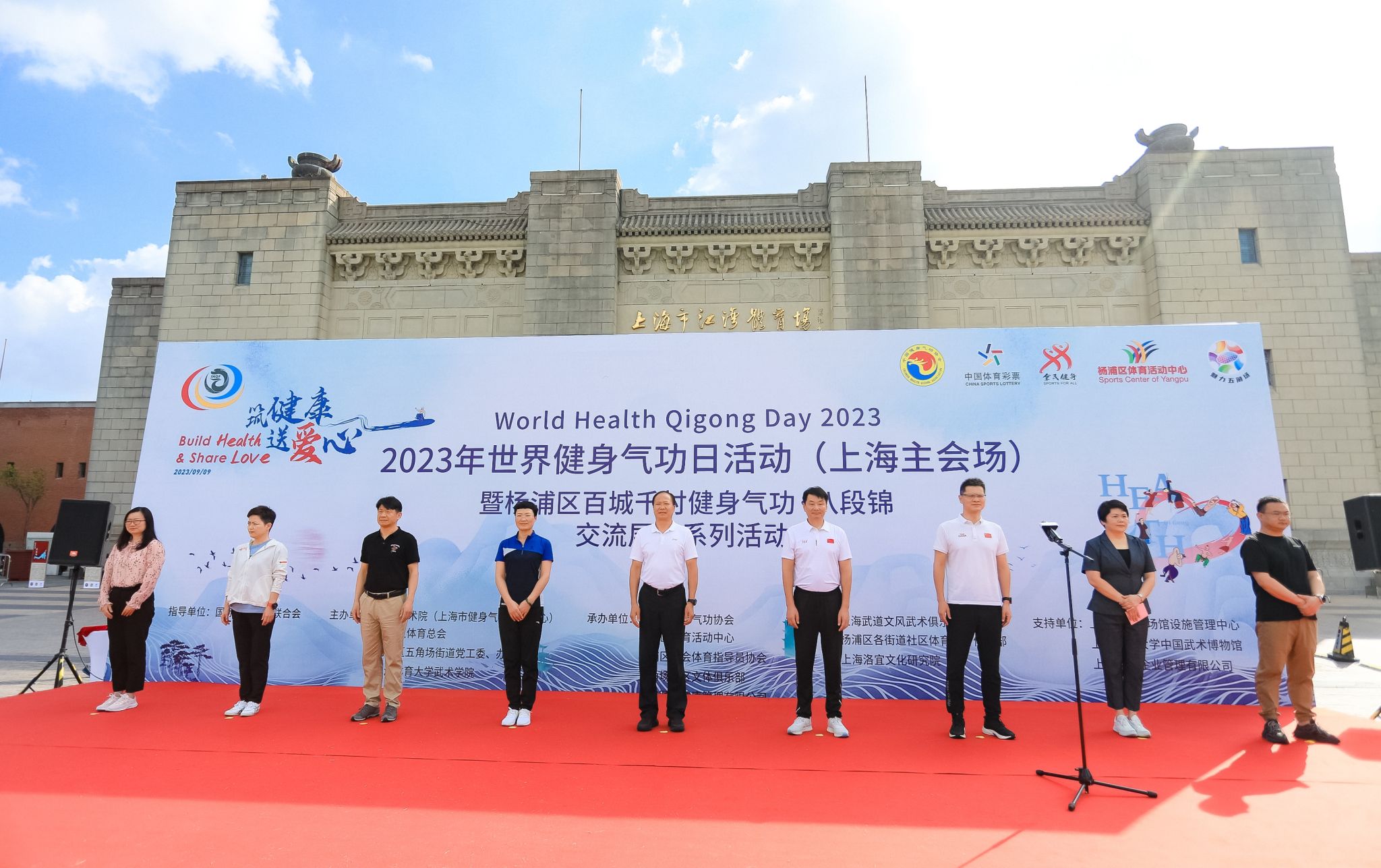 本网讯 2023年9月9日,由国际健身气功联合会指导,上海武术院(上海市健身气功管理中心)、杨浦区体育总会、杨浦区五角场街道党工委、办事处、红足一1世足球网官方网站武术学院(中国武术博物馆)主办的“2023年世界健身气功日活动(上海主会场)暨杨浦区百城千村健身气功·八段锦交流展示系列活动”在上海杨浦区江湾体育场开幕。上海市体育局党组成员、一级巡视员赵光圣,上海武术院(市健身气功管理中心)院长、主任陈皓,上海市体育场馆设施管理中心主任陈慧,杨浦区体育局党组书记、局长胡元晖,红足一1世足球网官方网站武术学院院长、中国武术博物馆馆长郭玉成,上海武术院(市健身气功管理中心)副院长、副主任谢芳,杨浦区体育局副局长俞华,五角场街道党工委副书记邵晓燕等多名领导和嘉宾出席此次活动。上海市体育局党组成员、一级巡视员赵光圣宣布开幕。
