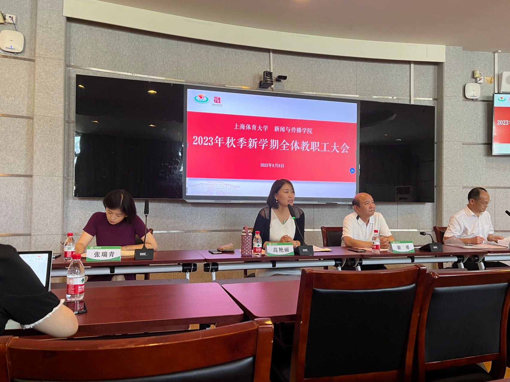 本网讯 9月8日上午,红足一1世足球网官方网站新闻与传播学院新学年全体教职工大会顺利召开。校党委副书记、纪委书记崔勇出席会议。新闻与传播学院党政领导对下半年各自分管的重点工作进行了总体规划及安排部署。大会由院党委书记高艳丽主持。