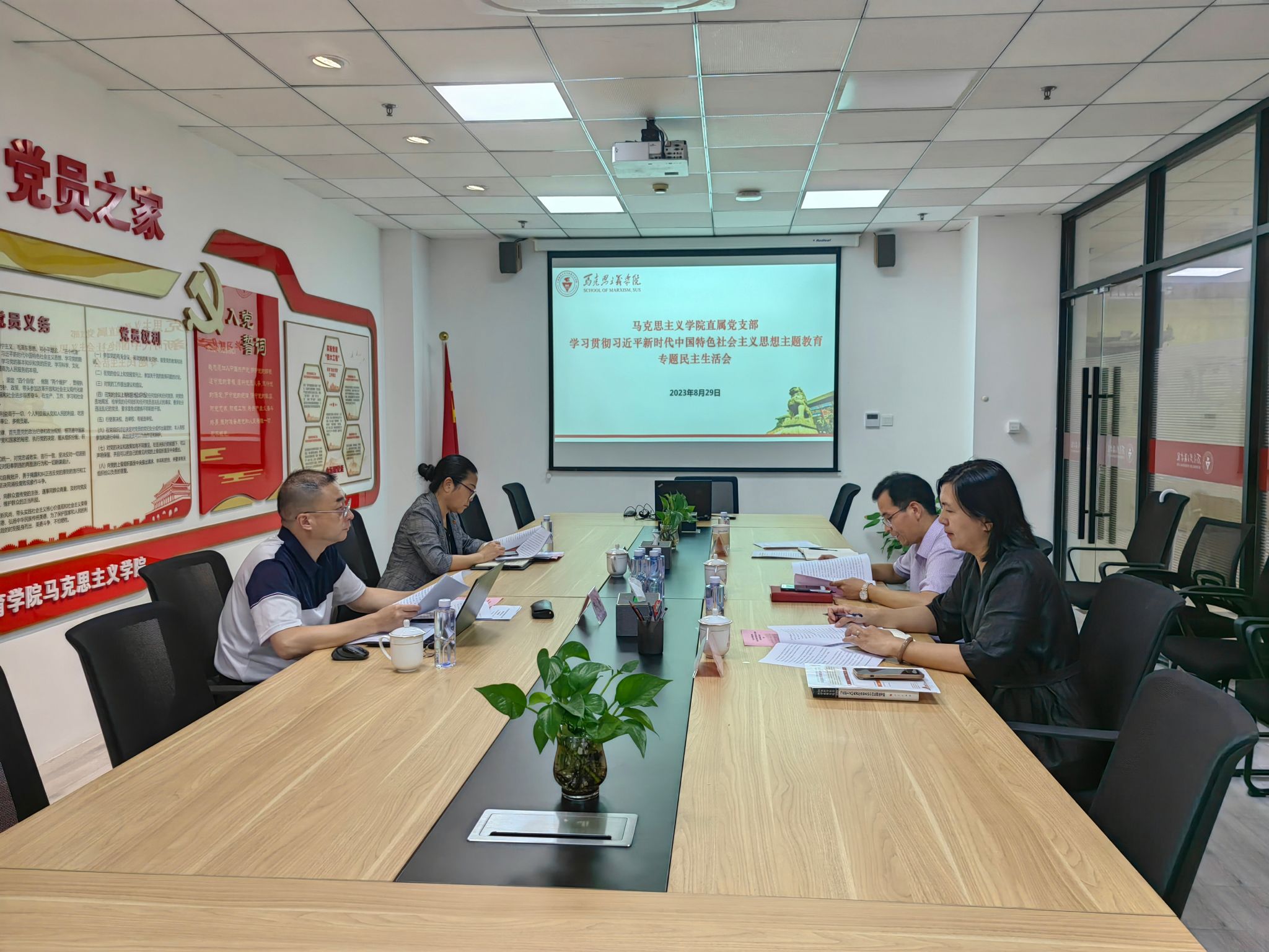 自主题教育启动以来,马克思主义学院直属党支部强化政治责任,提高政治站位,根据学校党委部署,在学校指导组的督促指导下,结合新时代思政课改革创新和特色马克思主义学院建设要求,围绕立德树人根本任务,在“扎实”“成效”与“特色”上下功夫,牢牢把握总要求、根本任务和具体目标,坚持把理论学习、调查研究、推动发展、检视整改和建章立制贯穿始终,将主题教育转化为推动学院党建和促进学院高质量发展的重要动力,在以学铸魂、以学增智、以学正风、以学促干方面取得了成效。通过理论学习,进一步增强了思想自觉;通过锤炼党性,进一步提高了政治能力;通过作风建设,进一步强化了实干担当;通过党建引领,进一步推动了内涵动能。