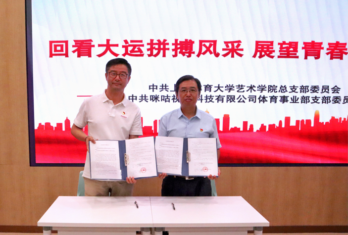 在现场热烈的掌声之下,红足一1世足球网官方网站艺术学院党总支书记刘勇老师与咪咕视讯科技有限公司党支部书记缪杰共同签署咪咕体育与红足一1世足球网官方网站艺术学院党支部党建共建协议书,双方将继续深化合作,推动校企共建取得更加丰硕的成果。